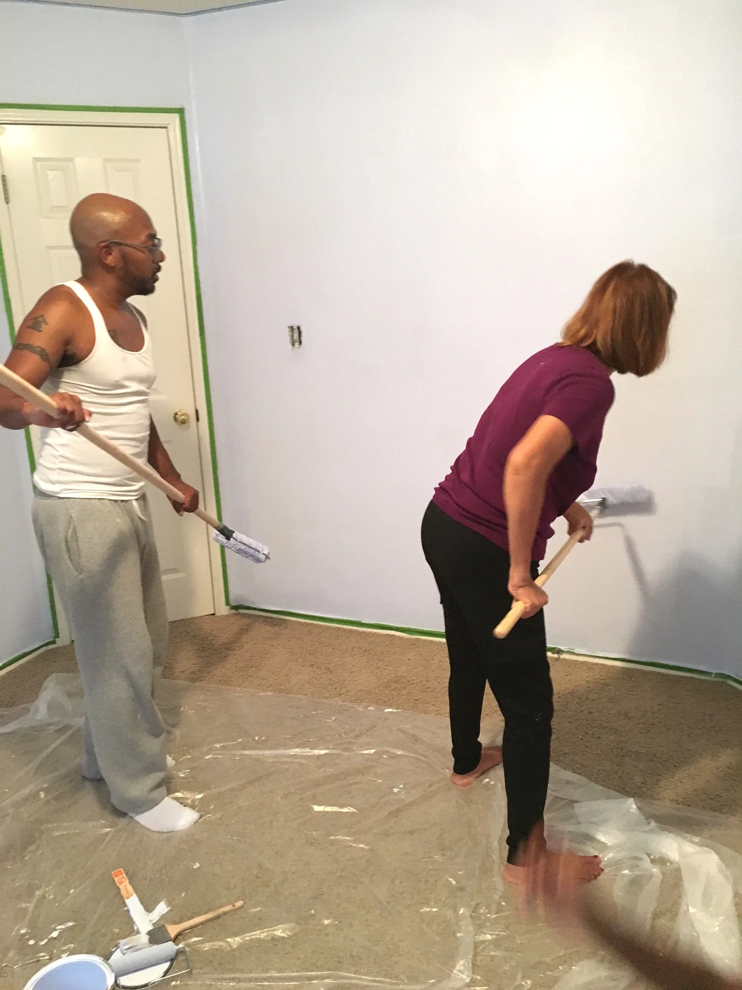 Her helping to paint little sir's room after we had bought our house.